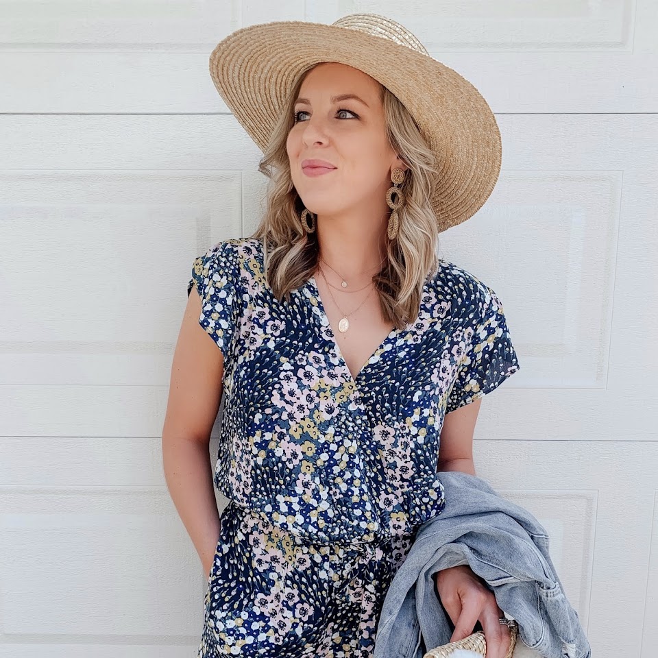 | Romper / Hat / Earrings / Similar Necklace / Jacket / Similar Purse |